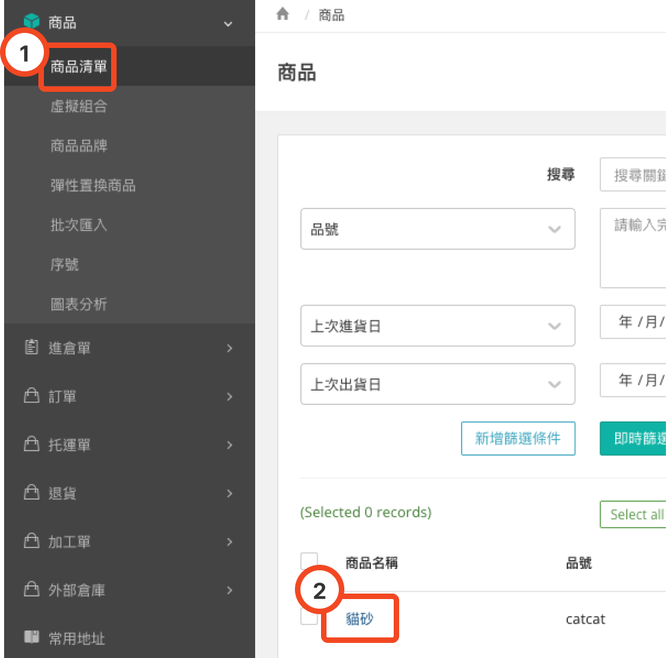 進入「後台>商品>商品清單」點擊要設定水位庫存量的商品名稱