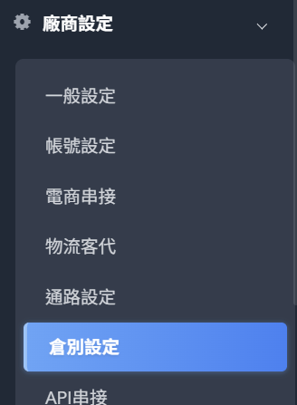 後台操作路徑:廠商設定 ➜ 倉別設定