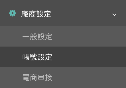後台操作路徑:廠商設定 ➜ 帳號設定