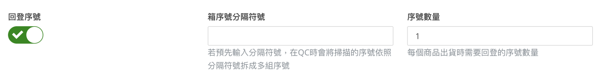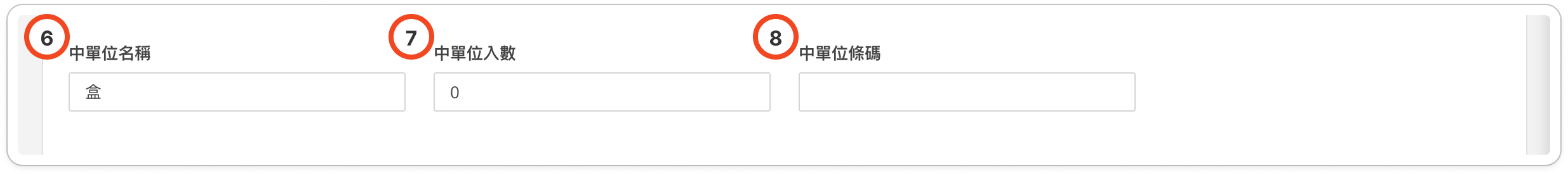 本次進倉商品一箱內有多少單位的商品,例如:1 箱 = 20 個商品,填寫「20」。