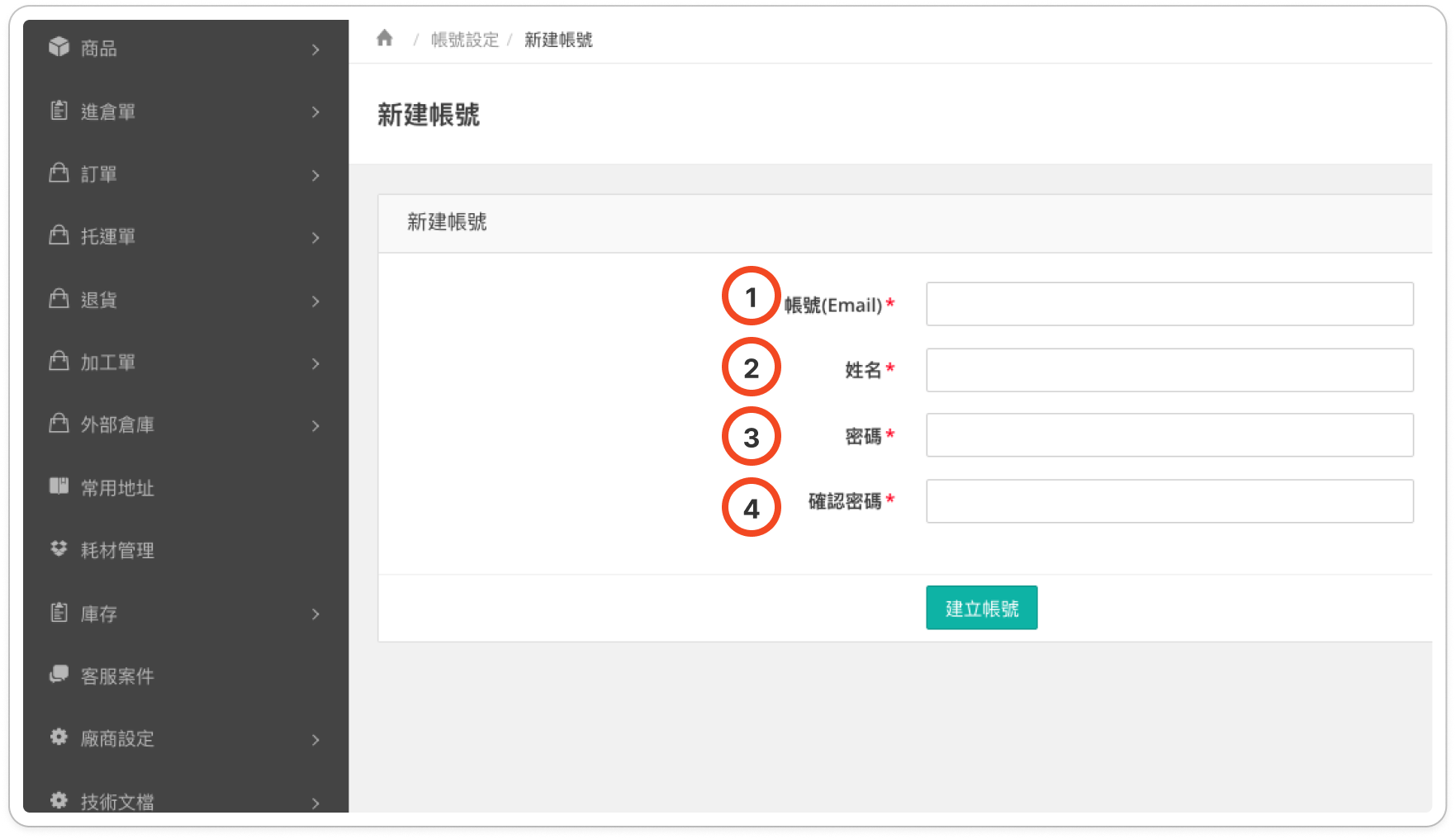 1、當倉庫作業需要多人協作時(例如:商品上架),可在此新增各自的帳號,避免共用同一組帳號造成管理混亂。