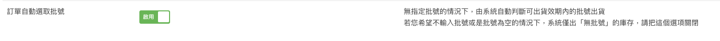 – 依照「一般設定」中的出貨設定:請至「後台 > 廠商設定 > 一般設定」中,確認「訂單自動選取批號 」的選項狀態