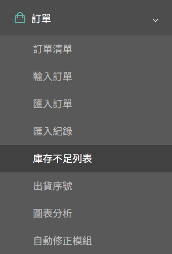 後台路徑:『訂單』➜『庫存不足列表』