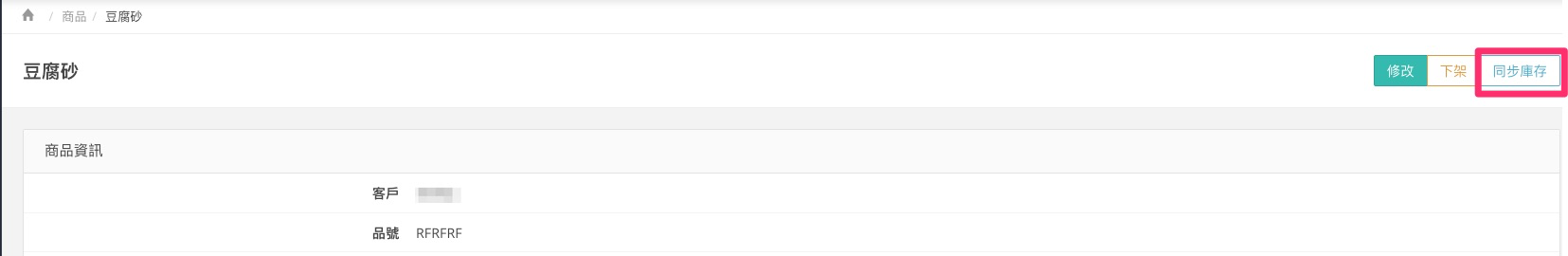 - 於後台商品清單,針對單品點擊「同步庫存」