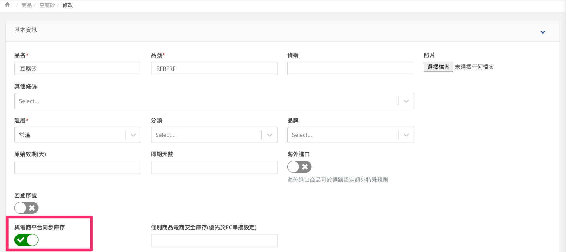 可以到「商品>商品清單」點擊商品後,確認是否有啟用EC庫存同步