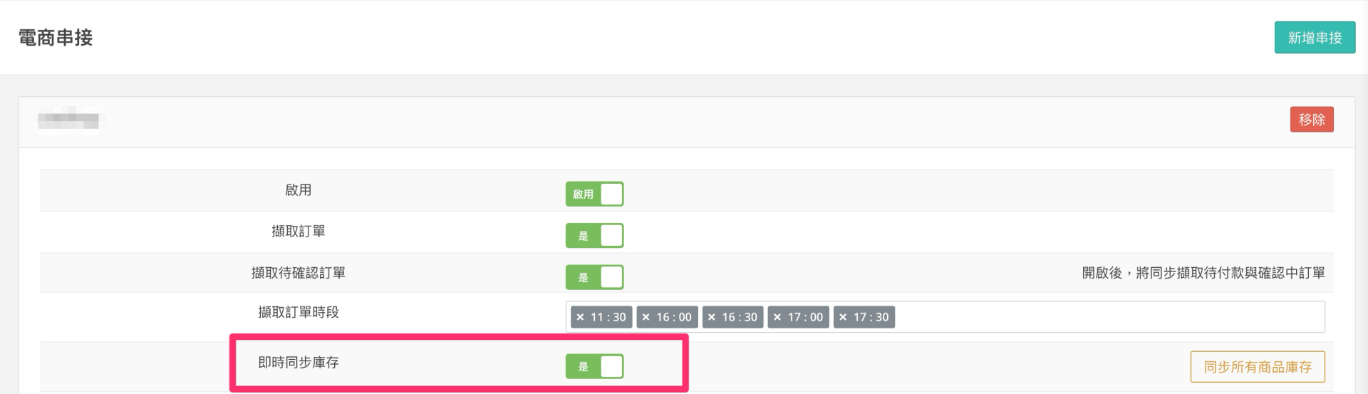 - 後台「廠商設定>電商串接」需開啟「即時同步庫存」