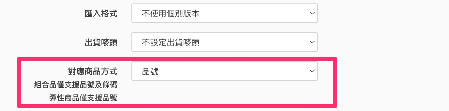 - 商品對應方式設定錯誤:可確認「廠商設定>通路設定」的商品對應方式或平台料號欄位是否填寫錯誤
