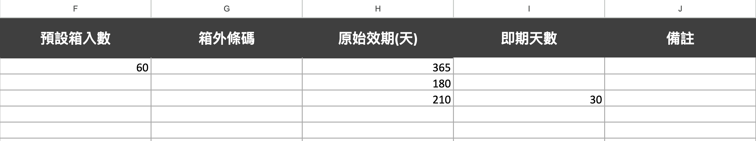H、原始效期(天):請填寫數字,留空等於沒有效期
