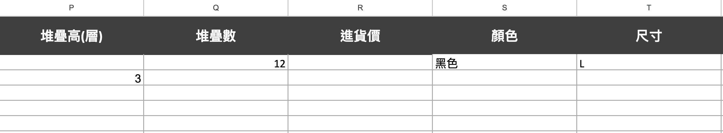 P、堆疊高(層):請填寫數字,商品每板高度的數量