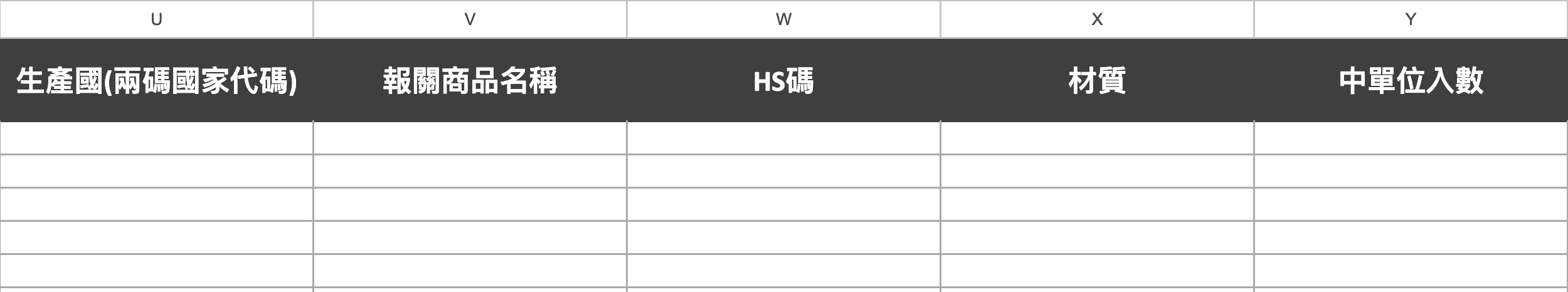 U、生產國(兩碼國家代碼):請填寫商品製造國家代碼