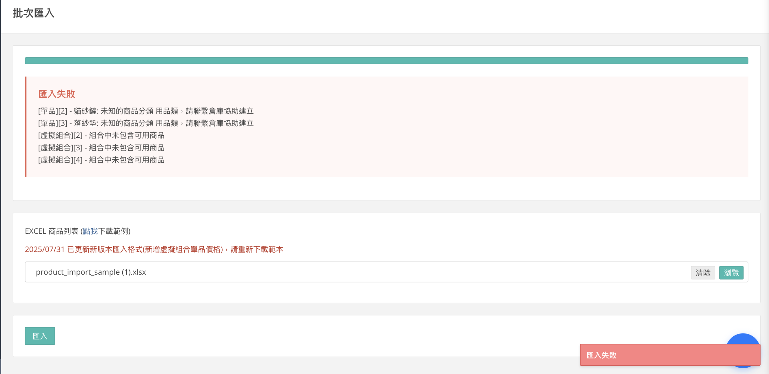 A:不行,建議操作匯入前,都先保留原先的商品資料檔案