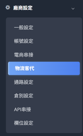 後台路徑:廠商設定→物流客代