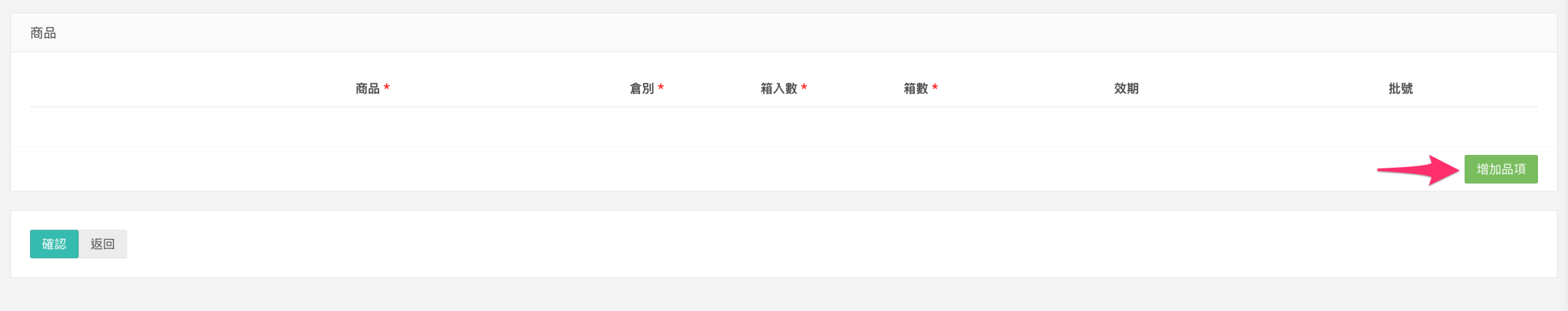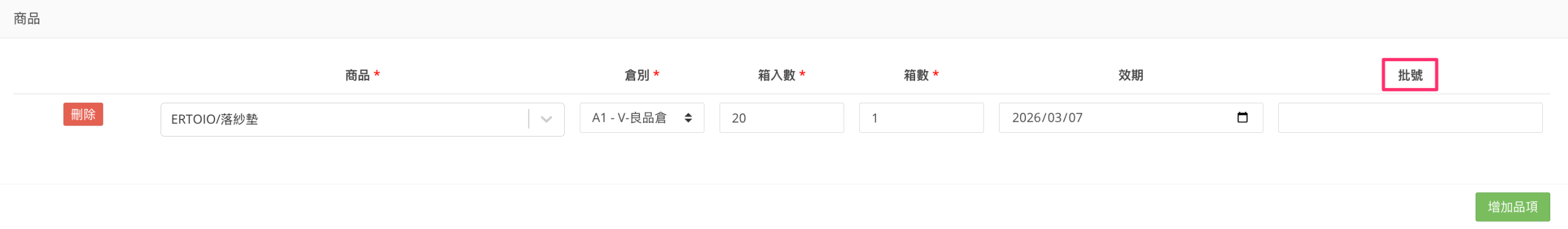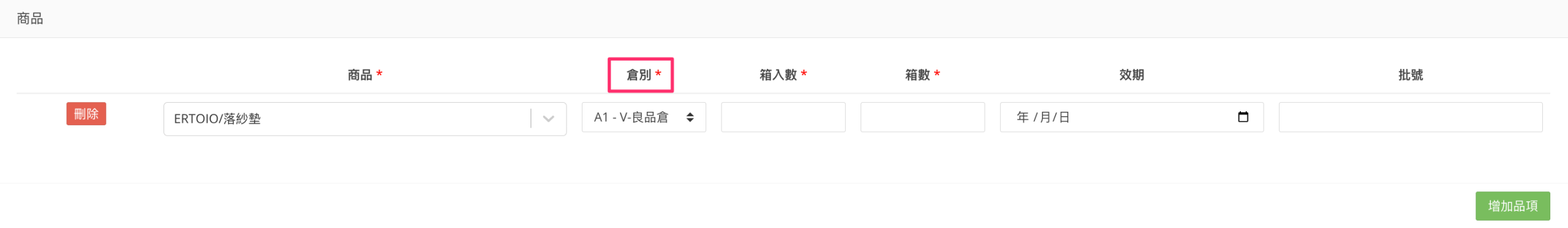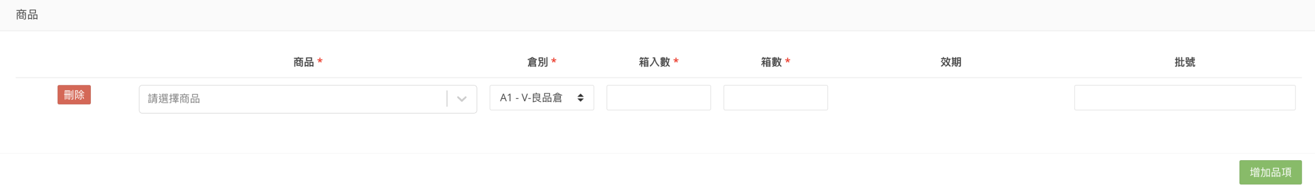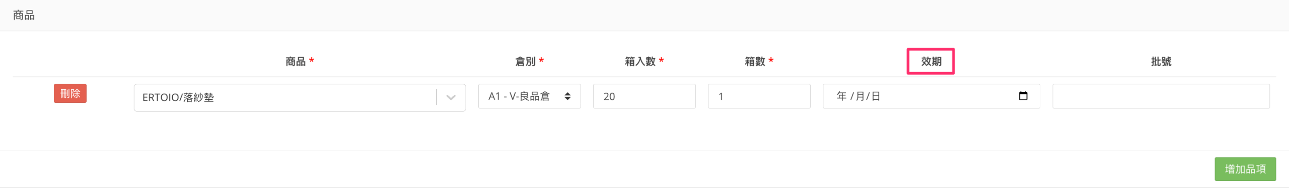 若所選的商品有填寫效期,則欄位為必填