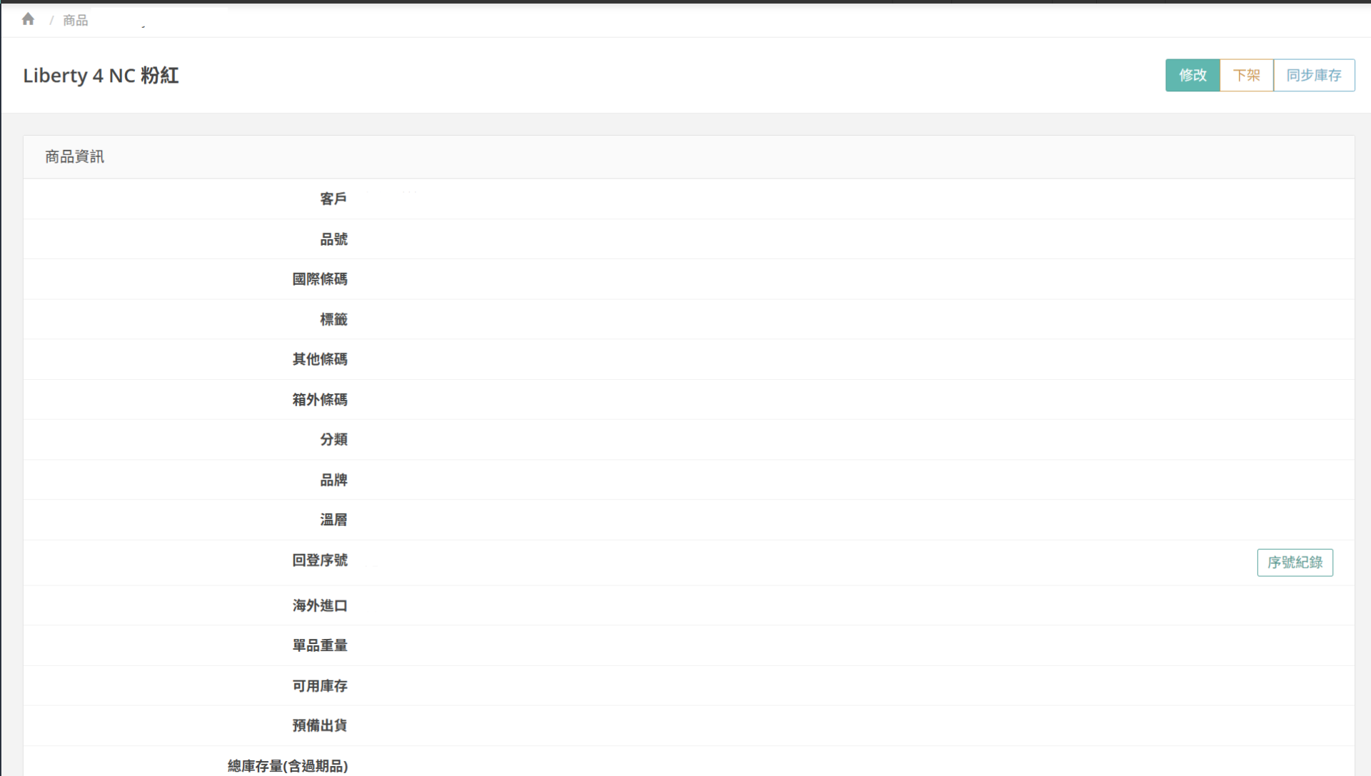 點擊品號或品名,可細看商品資訊、本倉庫存、外倉庫存、預計入庫