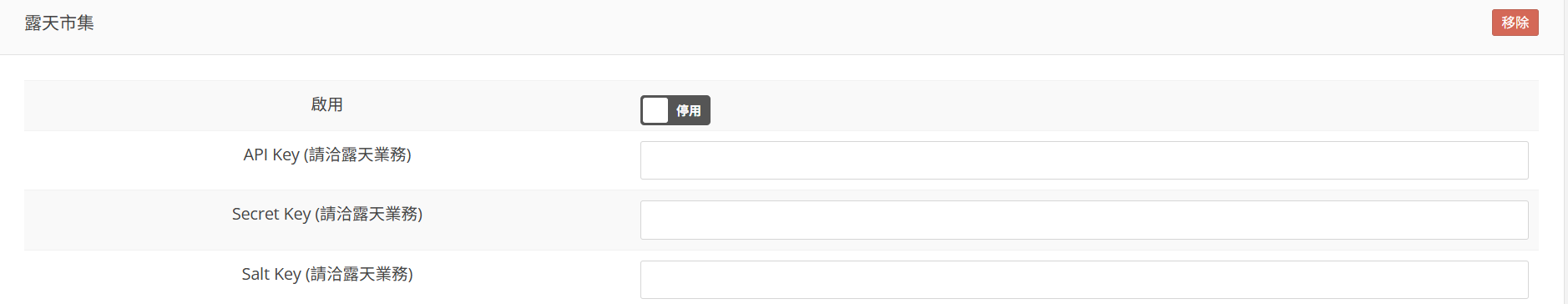 3、請與露天市集業務提出申請取得 API Key、Secret Key、Salt Key