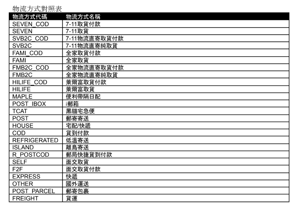 | 支援功能 | 取得訂單 | 取得託運單 | 回壓出貨狀態 | 庫存同步 |