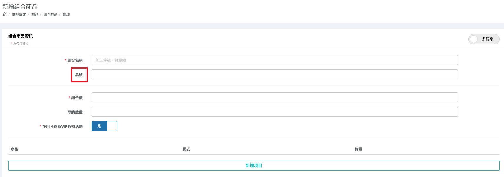 2、如果在 LiteShop 有建立組合品,於倉庫也要建立組合品項,且「品號」是否與 LiteShop 後台的「品號」一致