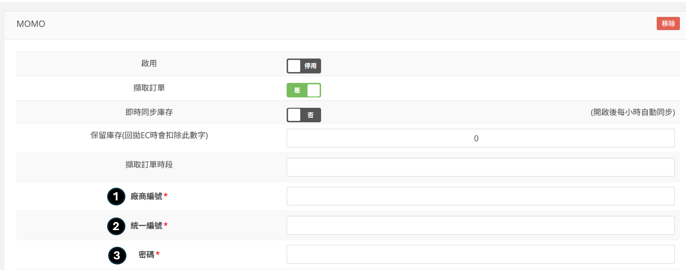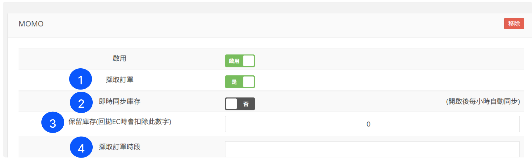 ◆庫存同步:將自動同步商品庫存數量給 momo